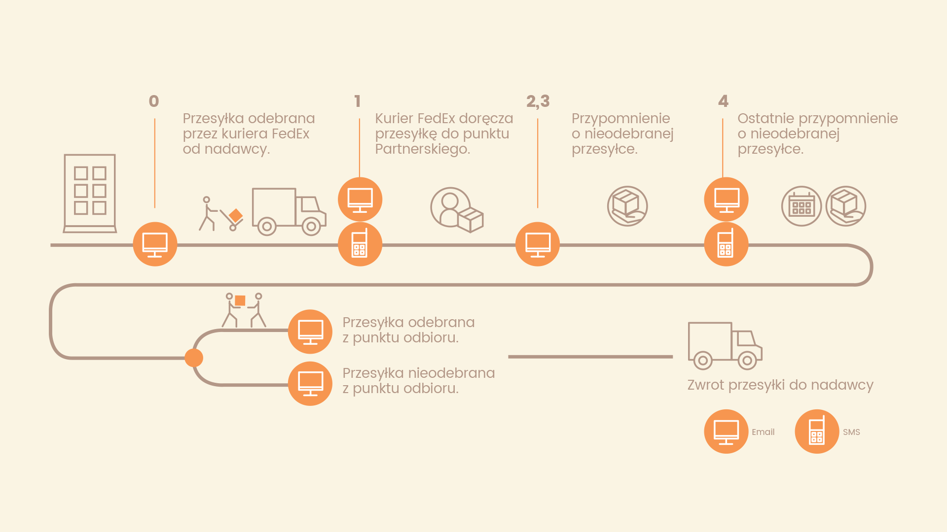 Kurier doręczy przesyłkę do wybranego Punktu Partnerskiego, a Ty otrzymasz powiadomienie e-mail i sms z kodem PIN do odbioru paczki. Od tej chwili masz 2 dni na jej odebranie. Jeśli tego nie zrobisz wróci do nas.