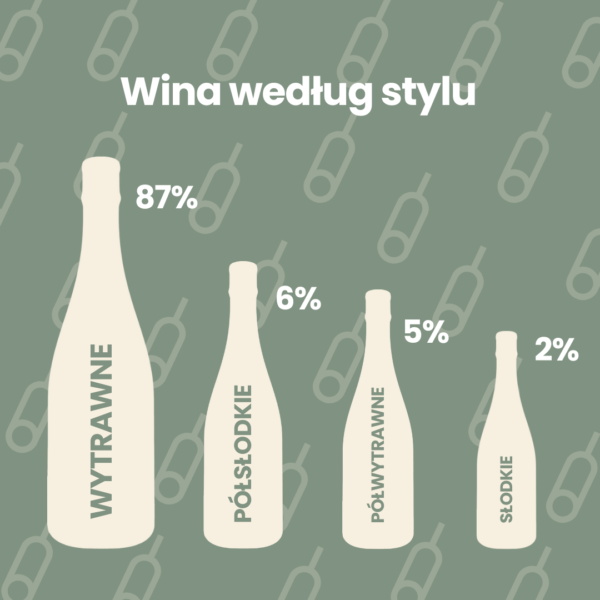 W minionym roku aż 87% Waszych zamówień w koszyku miało wina wytrawne. To znaczy, że powiększyła się przewaga tego rodzaju win nad innymi. Wina półsłodkie to zaledwie 6% wszystkich zamówionych win, a półwytrawne 5%. Najmniej popularne są jednak wina słodkie, bo stanowiły zaledwie 2% zamówień.