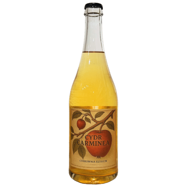 Carminea to cydr wytrawny, musujący, zrobiony z jednej odmiany jabłek – kalwila karminowa, zebranych z bardzo starych drzew. Ma mocno zaznaczony jabłkowy aromat i niższą kwasowość, niż Cydr Elysium. Będzie pasował wszędzie tam, gdzie potrzebujemy delikatnie podkreślić aromatykę potrawy i dodać nieco jabłkowego charakteru. Tatar wołowy z kiszonym ogórkiem, pierogi z bundzem czy szarlotka na kruchym spodzie to tylko kilka propozycji na udane połączenie.
