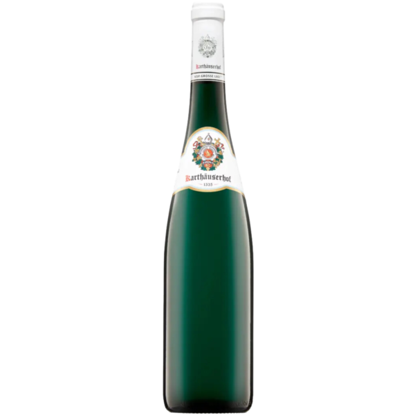 Riesling Grosse Lage z Karthäuserhofberg to klasa sama w sobie. Grona wzrastają na działkach obejmujących około 20 hektarów o południowo i południowo-zachodniej ekspozycji. Pozwala to na niespieszne dojrzewanie gron i zachowanie odpowiedniej równowagi. Co więcej, zbocza są bardzo strome, o nachyleniu sięgającym 55%, a to intensyfikuje kontakt gron ze słońcem. Panuje tu wyjątkowy mikroklimat. Gleba łupkowa, z dużą zawartością żelaza, nadaje winom mineralności. Są to idealne warunki do uprawy króla szczepów białych – rieslinga. Zbiór odbywa się w połowie października. Po fermentacji w kadziach stalowych, wino dojrzewa na osadzie drożdżowym przez okres 6 miesięcy. W nosie dominują nuty owocowe (brzoskwinia, grejpfrut, biała porzeczka). Na podniebieniu surowe, mineralne, ale też soczyste. Wyczuwalna słodycz jest równoważona solidną kwasowością. Świetny kompan pikantnej, aromatycznej kuchni. Wino będzie zyskiwać przez najbliższe dwie dekady.