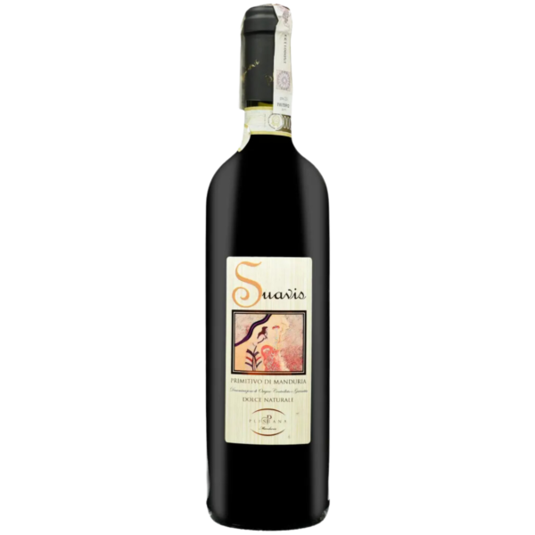 Nieczęsto spotykane słodkie wino czerwone z gorącego południa Włoch. Nie jest tak mocne i ciężkie jak wina likierowe, a naturalny cukier resztkowy równoważą garbniki solidnie macerowanych gron odmiany primitivo. Winnice mają ponad trzydzieści lat. Zebrane grona podsusza się dla koncentracji cukrów, po krótkiej fermentacji dojrzewa pół roku w kadziach. Ma barwę gęstej purpury i fioletu, intensywny zapach leśnych owoców i truskawek z niuansami czekolady i przypraw korzennych. Dzięki niezłej równowadze smaku zachowuje rześkość. Można spróbować z przekąskami jak orzechy czy prażone migdały, z serem pecorino, ale chyba najsensowniej do suchych ciast i pierników.