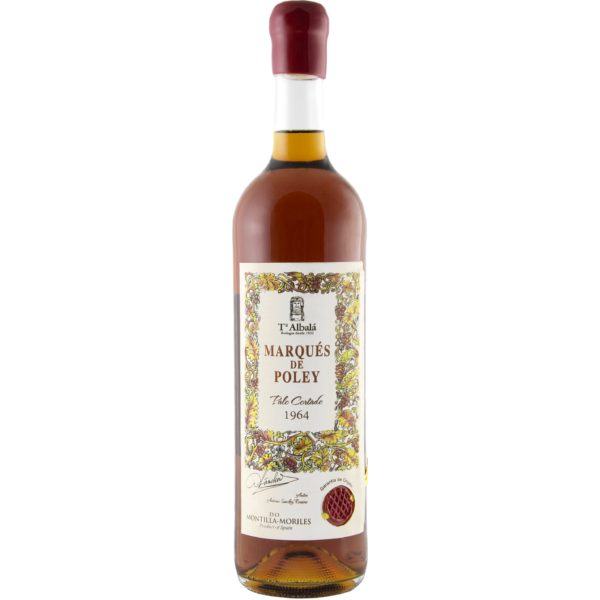Palo Cortado to arcy-rzadka i trudna w stworzeniu wersja andaluzyjskich win wzmacnianych, a tutaj dodatkowo, mamy wino z jednego – 1964 – rocznika! Wyjątkową jakość potwierdza platynowy medal i 97 punktów w ocenie Decanter DWWA. Ciemnobursztynowy kolor wynika z powolniej oksydacji wina w beczce. Nos, również w dużym stopniu ukształtowany przez dębową beczkę, odkrywa przed nami aromaty starego drewna, solonych migdałów, prażonych orzechów, daktyli, przypraw i karmelu. W ustach wyczuć można powagę, moc i szlachetność. Tekstura wrażeniem przypominająca słodkie wino kontrastuje z całkowitą wytrawnością i słonawą nutą. Całość wieńczy złożony, długi, wręcz niekończący się finisz. Wino zdecydowanie kontemplacyjne.