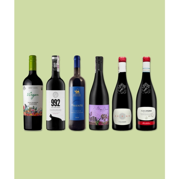 W skład zestawu wchodzi sześć win czerwonych: cztery wina z Włoch i po jednym z Hiszpanii i Argentyny. Mamy tutaj przegląd różnych szczepów i kupaży: połączenie syrah z garnachą od katalońskiego producenta Capcanes, ciepłolubne syrah Oriente od Chimery D’Albegne, kupaż z czerwonych odmian z regionu Veneto Azobe, organiczne, wegańskie wino Virgen z Argentyny, wyraziste i esencjonalne „992” z Kastylii oraz wino, powstałe z połączenia dwóch tamtejszych odmian winorośli – corviny (80%) oraz rondinelli (20%) z regionu Garda. Te sześć tytułów zostało wybrane z myślą o wszystkich tych, którzy poszukują win z klasą, godnie reprezentujących uznane kraje winiarskie. Wybrane pozycje będą stanowić doskonały prezent dla koneserów i początkujących.